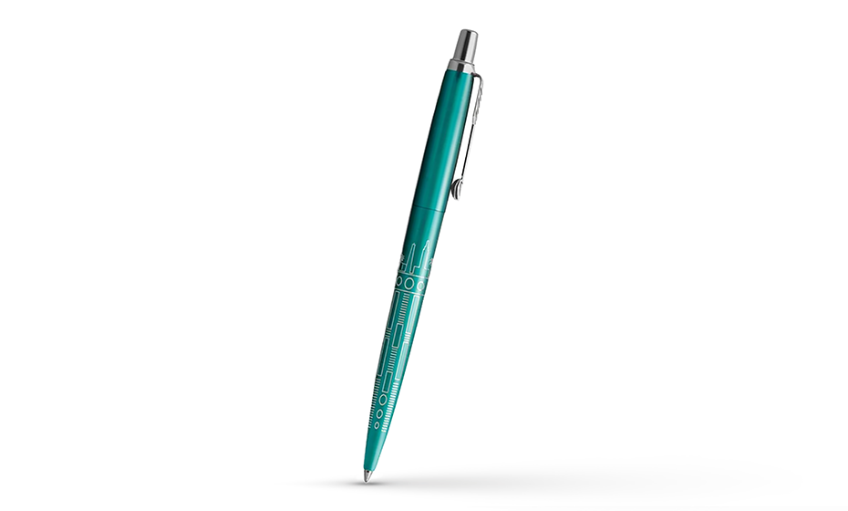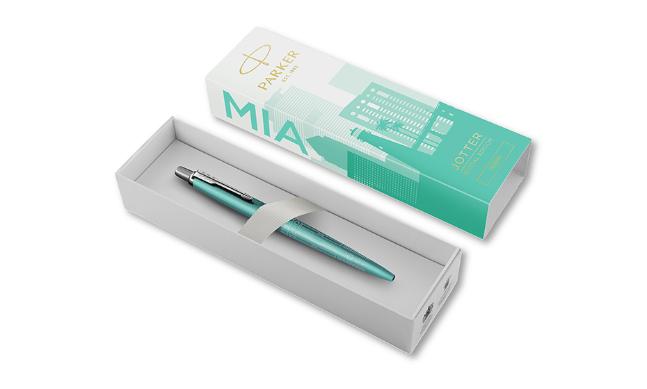 Ручка шариковая Parker "Jotter Miami Turquoise CT" из серии "мировые мегаполисы" посвящена Майами. Корпус ручки изготовлен из нержавеющей стали, покрыт бирюзовым матовым лаком с лазерной гравировкой с узорами, вдохновленными яркими зданиями в стиле ар-деко, которые определяют уникальное очарование этого города. ом Макартур Козуэй, важным связующим звеном между центром Майами и Майами-Бич с потрясающими видами на городской пейзаж. Сделано во Франции.