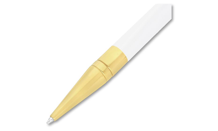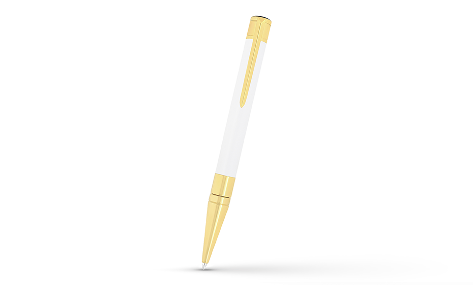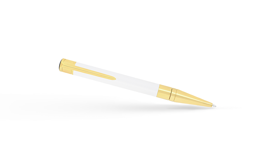 Ручка INITIAL (шариковая), позолота, белый современный лак, гравировка "S.T. Dupont