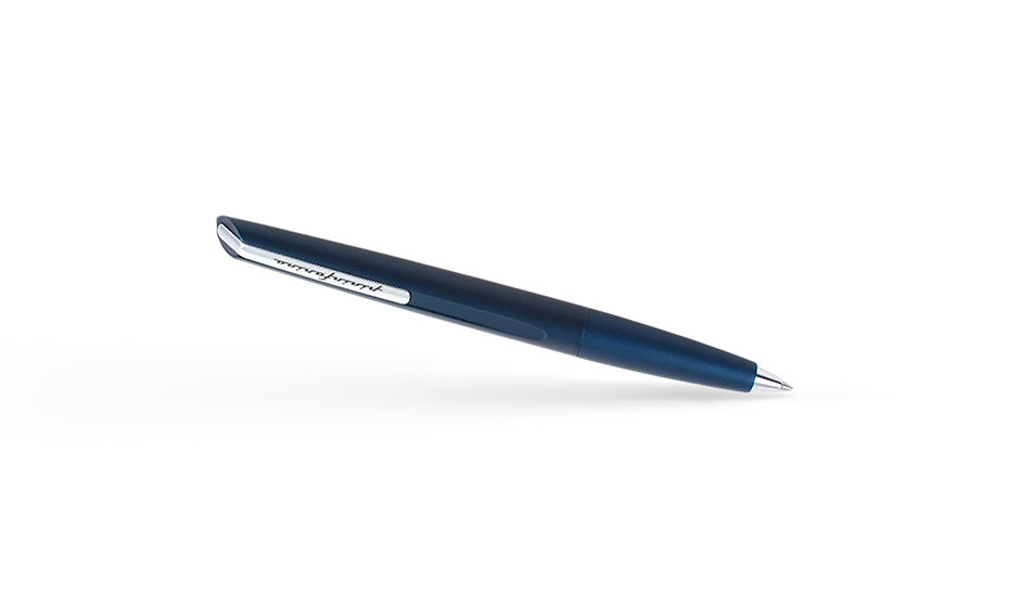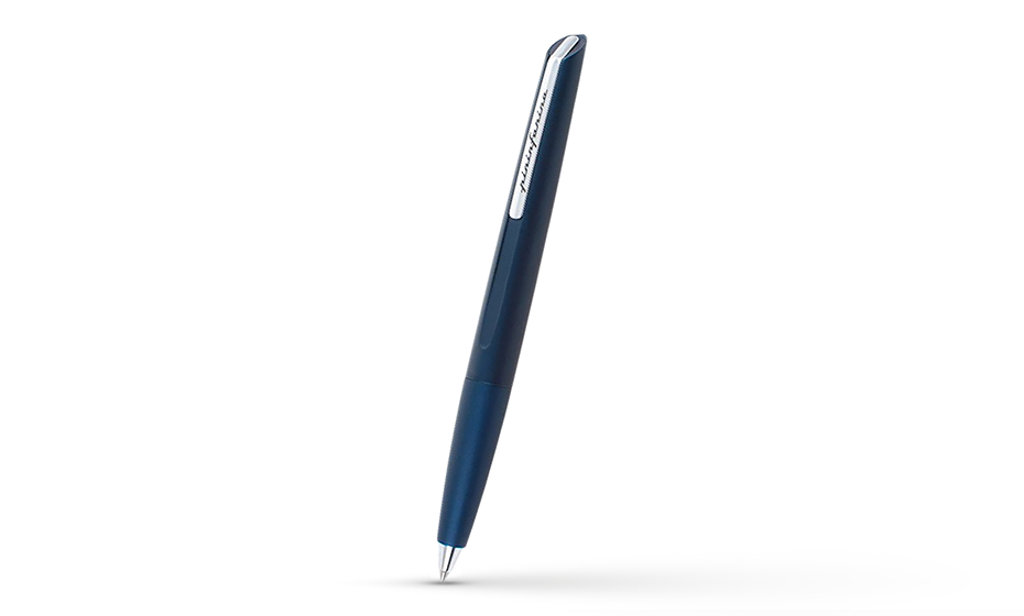 Шариковая ручка из коллекции 2021 года. Отличительной чертой шариковой ручки является выдвижной пишущий узел. Поворотный механизм плавно убирает не только пишущий узел, но полностью наконечник ручки внутрь корпуса. Элегантное сочетание темно-синего матового корпуса и серебристого полированного клипа. Корпус ручки выполнен из алюминия, ее длина 14,3 см, вес 47 гр. Упакована в серебристую округлую подарочную коробку. В ручке используется шариковый стержень Parker или Schmidt P900 M с синей пастой.