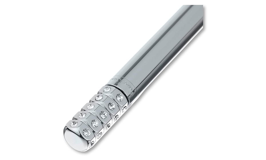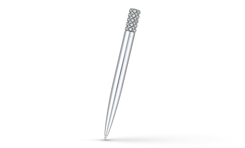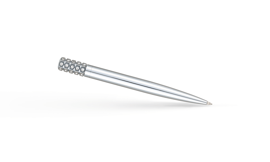 Ручка шариковая Pierre Cardin GRACE. Корпус - латунь. Кольцо, кнопка - латунь. Цвет - серебристый. Стразы Swarovski. Представляем Вашему вниманию пишущие инструменты серии Grace - это уникальные ручки, которые отличаются особенной конструкцией и роскошным дизайном. Ручки идеально подходят для тех, кто предпочитает эксклюзивные аксессуары, они подчеркнут вашу индивидуальность! Ручки серии Grace не имеют клипа, что делает их оригинальными пишущими инструментами. Верхняя часть украшена стразами Swarovski. Почувствуйте утонченность и изысканность с новой серией пишущих инструментов Grace.