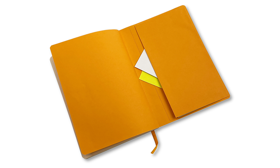 Записная книжка из мягкой итальянской эко-кожи, 80 листов, бумага слоновая кость. Резинка-фиксатор и закладка ляссе оранжевого цвета, внутренний карман для мелочей, закругленные углы.Внутренний блок: точкаПлотность: 90 г/кв.мРазмер: (А5) 148х210 мм